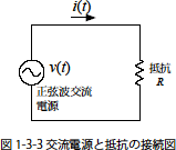 たとえば図1-3-3 のように,正弦波交流電源と抵抗R を接続した系について電力および仕事(エネルギー消費)を計算してみましょう.